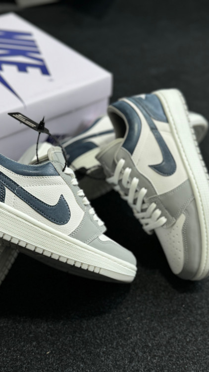 کتونی جردن ۱ سفید سرمه ای با کیفیت بالا رویه چرمی